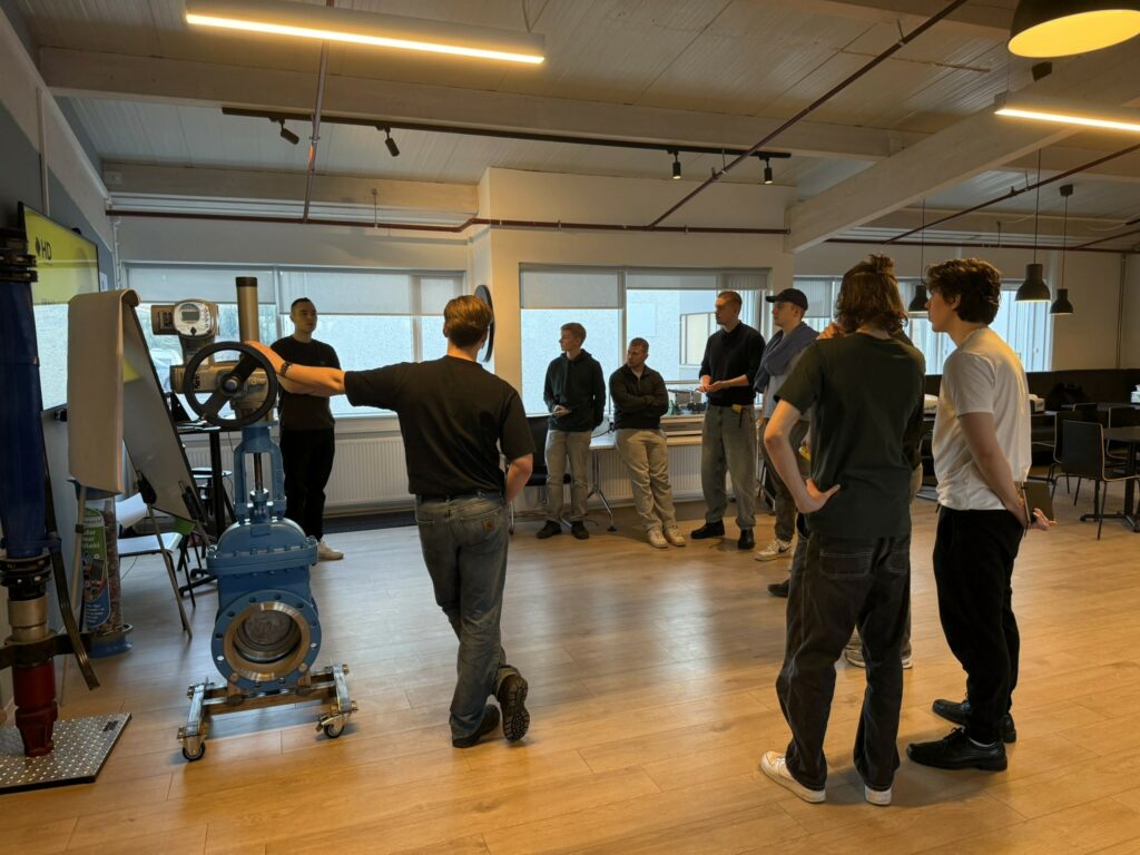 Á dögunum tók HD á móti hópi nema frá Akureyri, sem stunda nám í orku- og iðnaðartæknifræði við Háskólann í Reykjavík, í starfsstöð fyrirtækisins í Mosfellsbæ. Markmið heimsóknarinnar var að kynna sér starfsemi HD í orkugeiranum, fá innsýn í verkefni fyrirtækisins og ræða framtíðartækifæri innan greinarinnar.